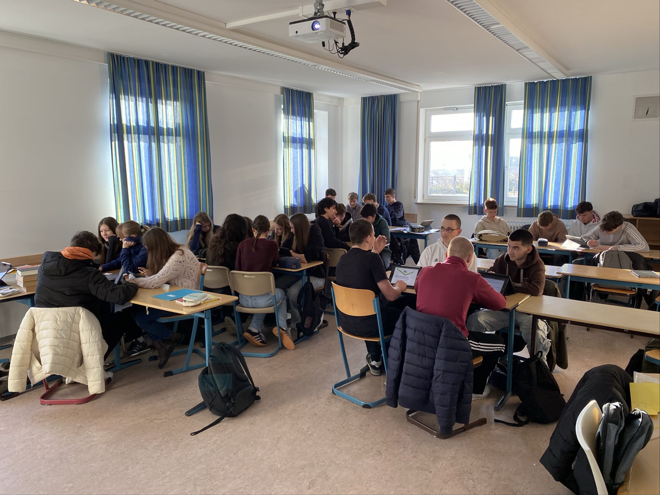 Wir freuen uns, dass etliche Thomasianerinnen und Thomasianer dabei sind. Die Bilder zeigen Schülerinnen und Schüler zweier 11. Klassen des wirtschaftswissenschaftlichen Zweiges unseres Gymnasiums während einer Arbeitsphase des Planspiels, an dem sie unter der Anleitung unseres Fachleiters für Wirtschafts- und Rechtslehre, Herrn Martin Schuster, teilnehmen. Wir wünschen euch viel Erfolg, aber auch viel Freude bei diesem Wettbewerb! „Daumendrück!“